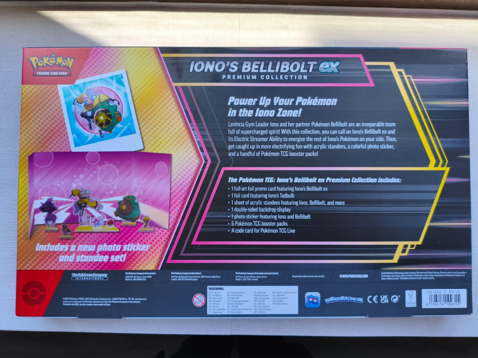¡La Líder del Gimnasio de Ciudad Leudal, e-Nigma, y su compañero Pokémon Bellibolt forman un equipo inseparable de alto voltaje! Con esta colección, podrás recurrir al Bellibolt ex de e-Nigma y a su Habilidad Streamer Electrizante para cargar las pilas de tus otros Pokémon de e-Nigma. Además, con las figuras acrílicas, la fotocalcomanía a todo color y el montón de sobres de refuerzo de JCC Pokémon que encontrarás en el interior, ¡tendrás garantizada una fiesta con chispa!